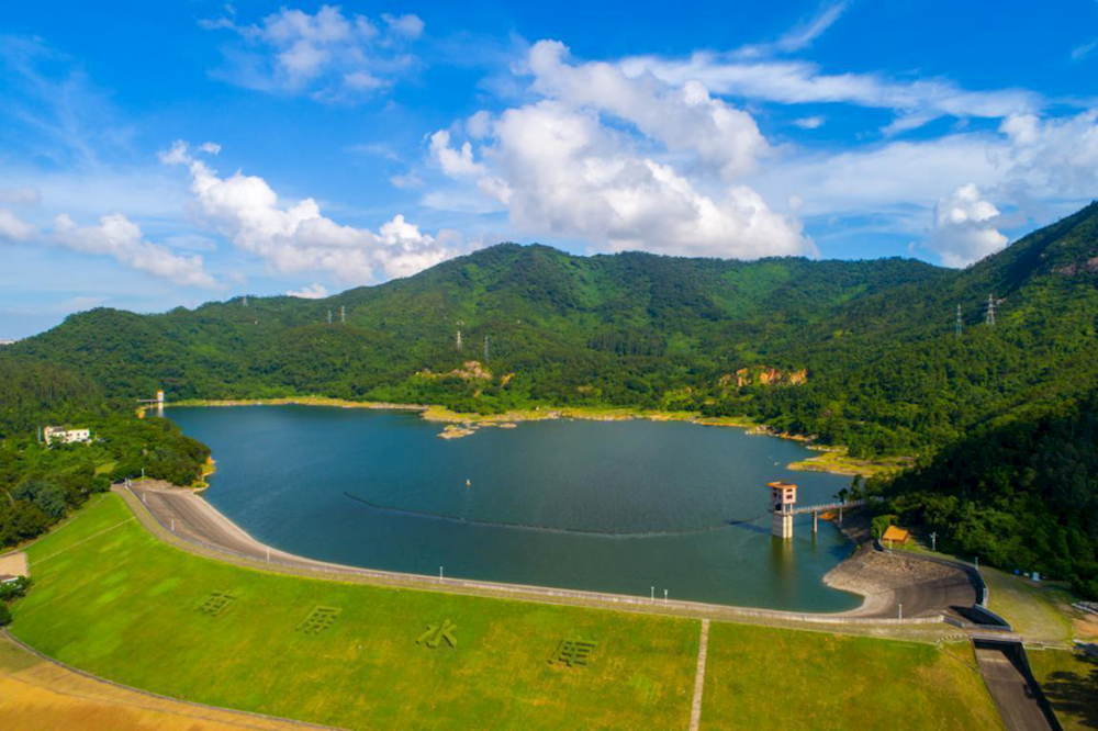 南屏水庫始建于1957年,原名豐收水庫,1958年10月完成,壩高18.3米,庫容80萬立方米,主要用于農田灌溉。1993年由珠海市供水總公司有償征用水庫并進行擴建,擴建后水庫正常蓄水位33.1米(黃基,下同),相應庫容501萬立方米;1994年10月開始蓄水,通過高、低涵可向澳門、珠海供水,由此極大增強了供水系統的蓄水、調咸能力,提高了供水質量;2001年5月廣昌泵站建成通水,廣昌泵站可由低涵補水南屏水庫,目前最大日補水量40萬立方米,使南屏水庫成為南區供水系統的樞紐工程。