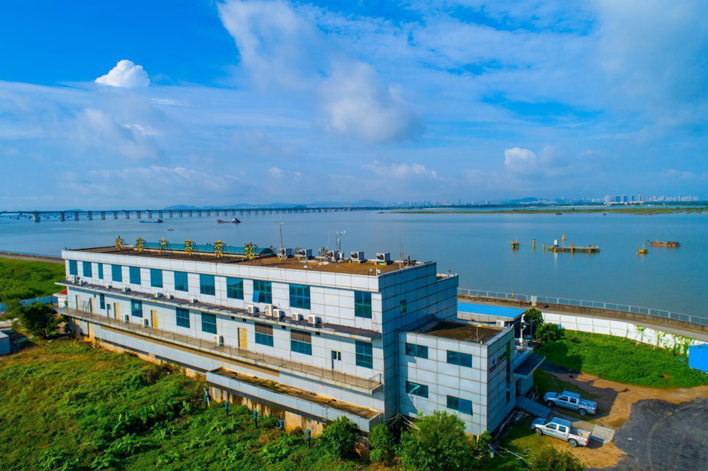 廣昌泵站位于西江磨刀門水道珠海大橋上游,占地面積71畝,共有一、二期兩座泵房,泵站采用河心式取水方式,總取水能力230萬立方米/日。每年豐水期(汛期)廣昌泵站是珠海東部以及澳門的主力取水泵站,而枯水期(咸期)則主要作為珠海原水供應系統中“西水東調來水”(上游平崗泵站、竹洲頭泵站或竹銀水庫來水)的中途轉輸水泵站,是珠海和澳門原水供應系統中重要的樞紐泵站。