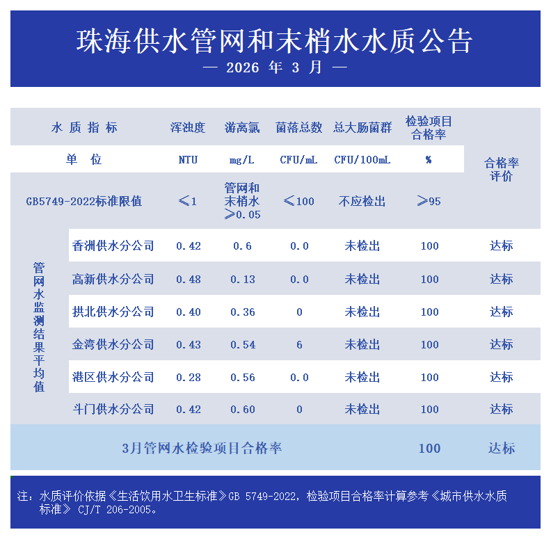 2026年3月珠海供水管網和末梢水水質公告.pdf