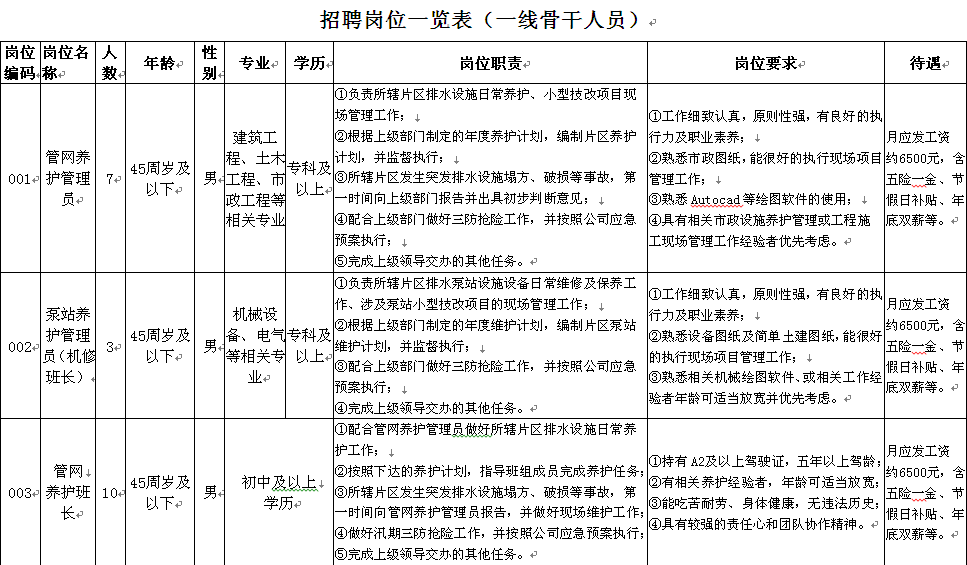 供排水管網公司具體業務:負責全市市政排水設施的日常運行、養護及巡查工作;按照市區三防部門要求開展城市內澇和污水應急搶險處置工作;受各區相關部門委托,提供排水許可技術審核服務工作;負責排水設施大中型項目的管理工作;負責供排水設施搶修、小型技改、小額安裝的項目管理工作;負責數字城管及熱線相關投訴問題處理及回復;負責排水信息化調度系統開發、建設和管理等工作。